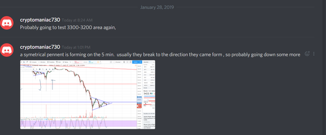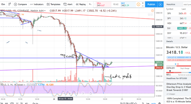 The thing is, I fell asleep through all the downward action that started yesterday night until today noon when it stopped going down temporary and consolidation at 3410 area.