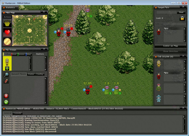 Huntercoin was created as an experiment, an innovative multiplayer online game that allowed players to create unique characters and, subsequently, provide the opportunity to earn coins (HUC) in the game by competing with other users, who could then be transferred to their own wallets. Huntercoin was autonomous since it did not require specialized servers or other infrastructure. It offers the first example of "human mining", in which players obtain demonstrably fair resources based on blockchain that have their own and characteristic value in the real world.