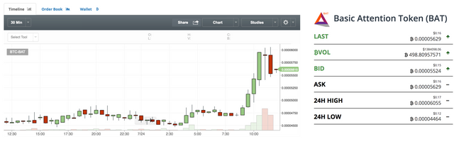 As of this posting, Bittrex has BAT up 24%. There's still a ways to go for BAT and there are definitely other competitors trying to elbow their way into the game. However, BAT is already a step ahead because BRAVE browser has been out for some time. I plan to continue consolidating BAT.