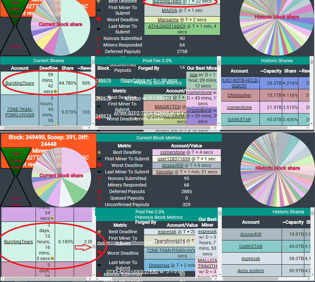 Your rewards will be based on how many Burst Tokens the people in your pool find. I think 1 Burst Token has 10,00 Burst coins. The person who finds the token gets a bigger share while the other people in the pool divide up what’s left. This is also not an even divvying up. Depending on how soon your miner acknowledges the token the more of the shared portion you will receive. Some pools are 50-50 for the miner and the others. Some are 60-40 or 40-60.