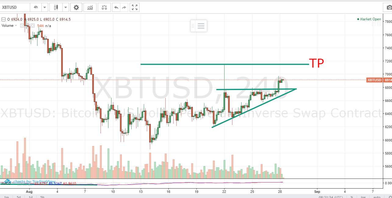 Ascending triangle on BTCsonjen749 (50)in #crypto • 7 years ago Guys on 4-hour chart of BTC I am seeing Ascending triangle. So I think we will go up more. We already crossed 6800 which is important level. I am sure no matter what we go down or up we will reach there first. This should work. #trade #cryptocurrency