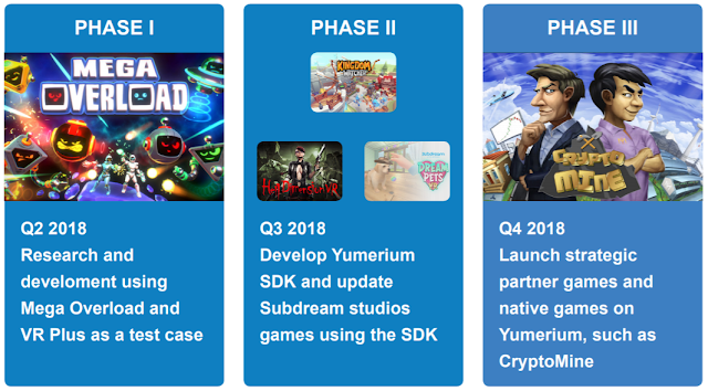 In the fourth quarter of 2018, we will start looking for partner developers to join the Yumerium network, as well as release our own game that natively uses Yumerium, CryptoMine.CryptoMine is a web-based strategy game that natively integrates Yumerium. The launch will be the final market test before opening the platform from selected partners to open adoption.