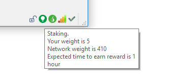 From here you can hover over the icons on the bottom right hand corner of your wallet. There you will see an icon that says “Not staking because you do not have mature coins”. This process takes 24 hours reach maturity. Once you reach maturity, you will be able to stake. The icon now will state your weight and how long until you should stake.