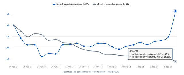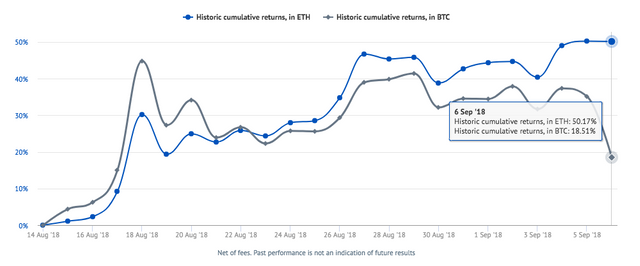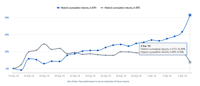 In just three weeks, outstanding results of this strategy are marked the +30.9% return in USD and yielding stunning returns in ETH(+50.2%) and BTC(+18.5%)!