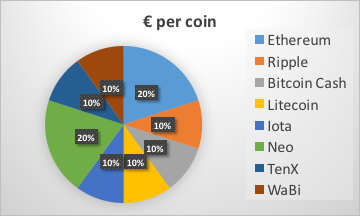 So now that we know what cryptos are, how to buy them and what is HODL, the next step is to select which coins we are going to hold. A portfolio is basically which coins you are holding and which percent of the total investment you allocate to each one. This is mine, and I will use it to hold during 2018, no selling allowed.