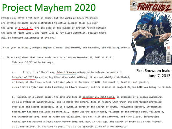 She talks about Project MAYHEM, which was the origins of Burning Man and has expanded to incorporate Anonymous, WikiLeaks, #Occupy, and ARGs such as #Cicada3301 through Project MAYHEM 2012 and Project MAYHEM 2020. This was a topic we covered in some depth in Silicon Valley's Secret Weapon - The Shadow History of Burners Part 7: Social Engineering on the Electronic Frontier (starts at about the 3 hour mark).