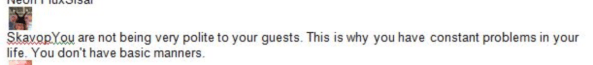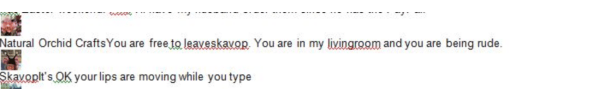 The "Skavop" character then appears and talks about Donna in the third person. Nobody's buying it, and the sock puppet account gets banned.