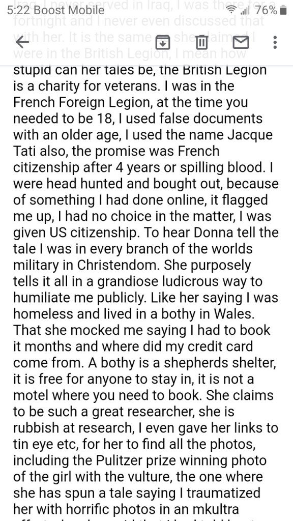 This banning triggered a lengthy post accusing others of gang-stalking, and of course painting Donna as an innocent victim.