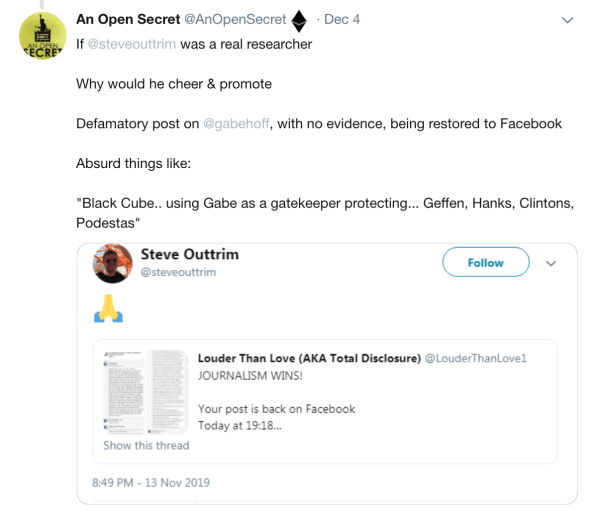 See also: Responding to An Open Secret/Gabe Hoffman False Allegations