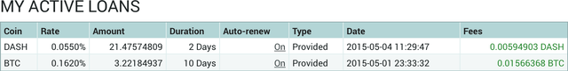 When your loans are being used by margin traders, you are earning interest on them, which is paid to your lending account when a contract closes. (Poloniex takes a fee of 15% from the interest you earn, so be sure to consider that when you place your offers.) Your active contracts are listed under My Active Loans.
