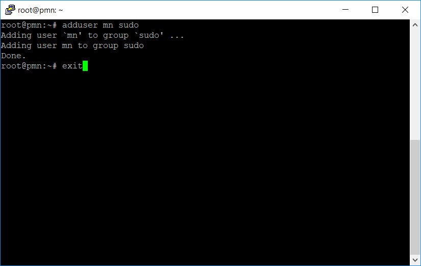 After this command is run, exit and return to your ssh client and log in again with this new user