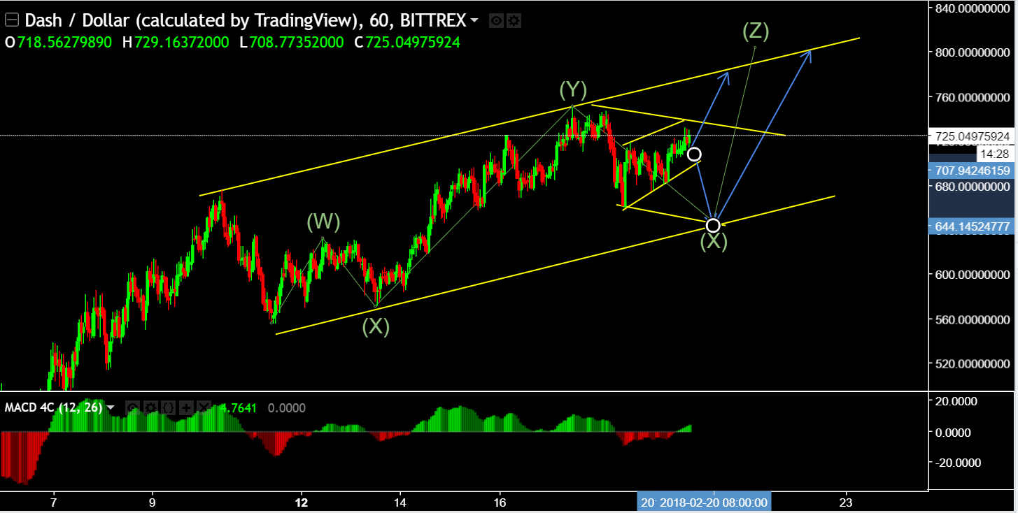 Dash is moving in a channel, so I expect it to retest the top for completing wxyxz pattern, however I don't see all this move as impulsive for bigger surge.