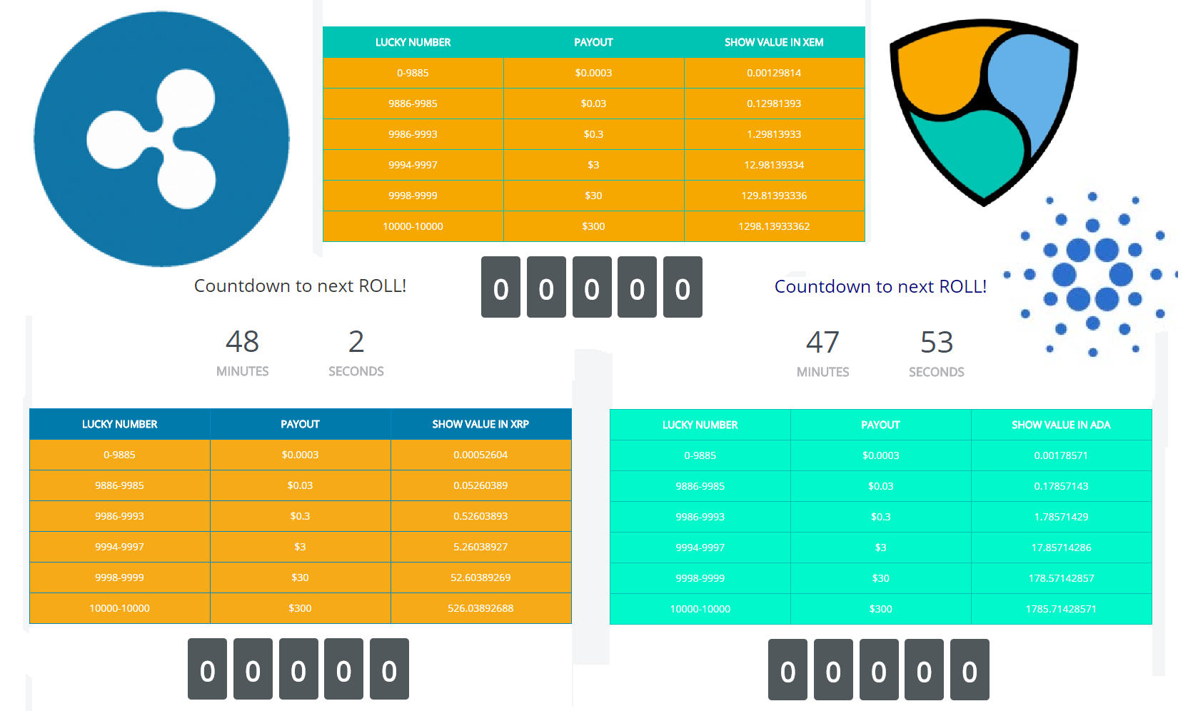 The amount of Free Ripple that you get will depend on the number that you roll and paid out according to the payout table below. You can come back and play every hour to win additional Free Ripple each time!