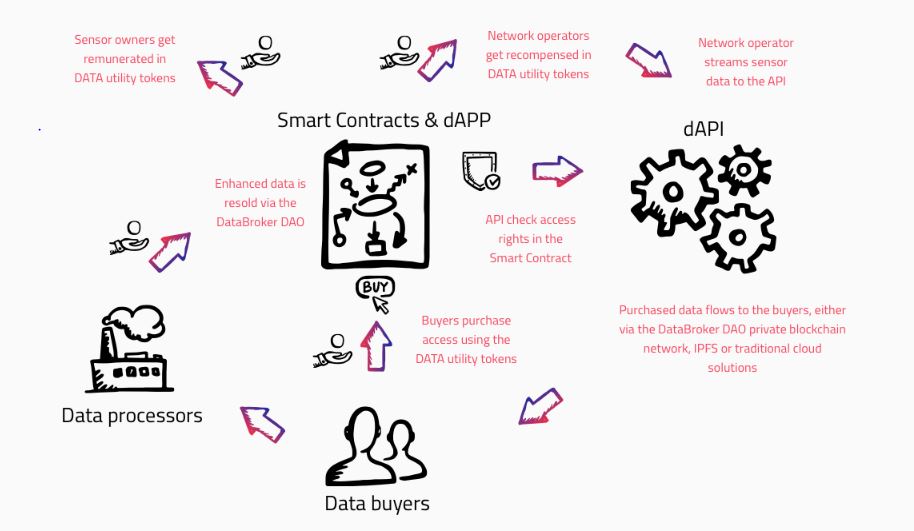 DataBroker DAO adlı proje bu gibi hallerde hayati kararlar verirkenoldukça önemli bilgilere ulaşmanızı sağlayacak bir proje ile blockchain dünyasına ismim atıyor.DataBroker DAO sensörlerin elde etmiş bulunduğu verilerin alınıp satılabildiği bir platformdur. DataBroker DAO vasıtası ile duyarga sahipleri elde etmiş bulunduğubilgileri örneğimizde bulunduğu gibi firmalara ya da kamu kurumlarına satabilir.
