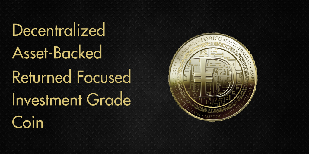 The cryptocurrency Darico stands for "Decentralized, Asset-backed, Return-focused, Investment-grade Coin". The cryptocurrency is backed by a unique combination of assets to potentially eliminate the volatility, otherwise associated with individual digital currencies like bitcoin and others. By doing so, the virtual currency not only ensures the best interests of the coin holders, but also attracts more people to adopt Darico, and in turn digital currencies.