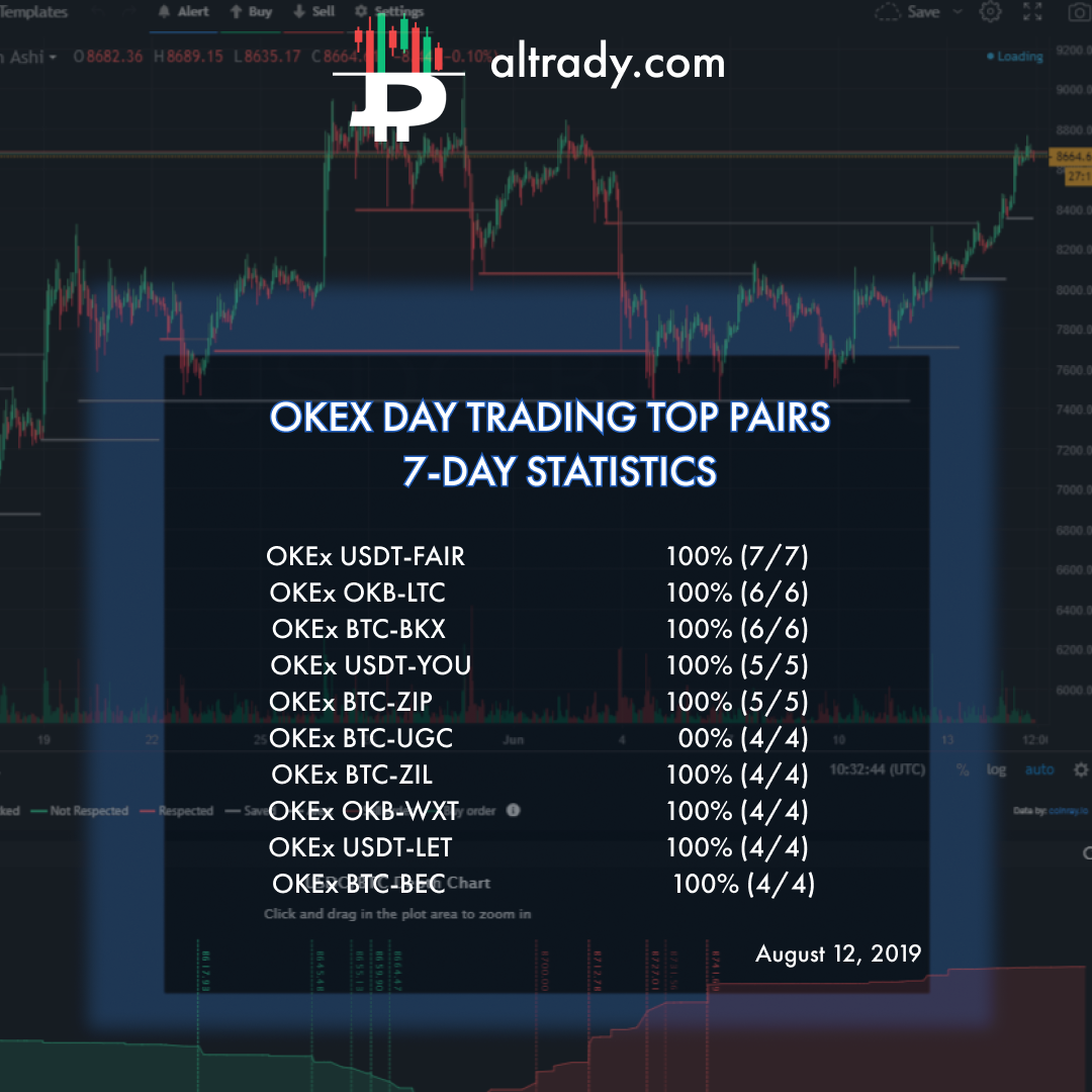 Altrady Application's Base Performace Statistics on Ten Crypto Exchanges (August 6 to 12, 2019)