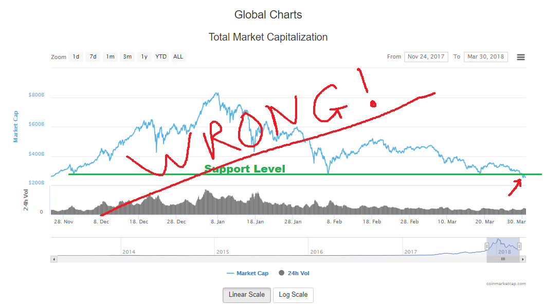 I based that on my (now known to be incorrect) TA at the time, the TA that predicted a market recovery from a double bottom "W" of the Total Market Cap on its support level.