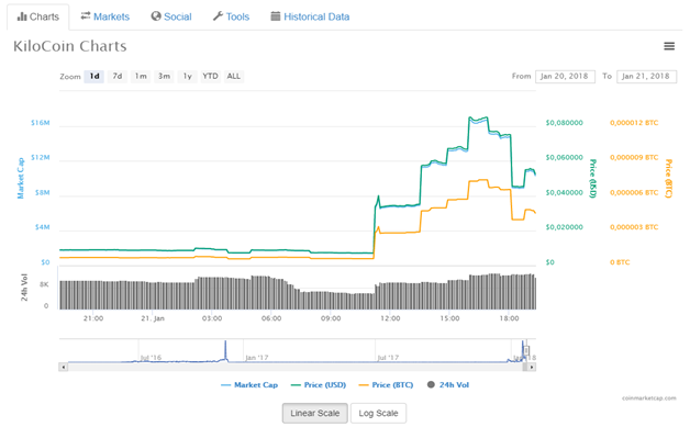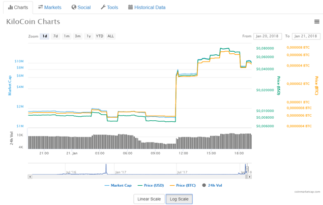For today, the market of the Cryptocoins still behaves in a bearish form with the main world Cryptocoin, despite this shows some growth in the new emergence in the market, therefore after revising the prices and percentages of Growth of more than 1500 cryptocoins, were selected those that at the moment have presented higher percentage of growth, being the figures corresponding to the day Sunday 21/01/2018.