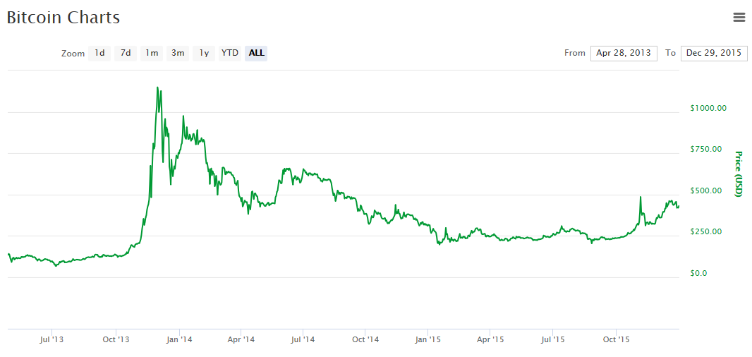 And here we see the Bitcoin chart from the April 2013 to December 2015.