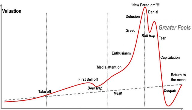 OK I'll start with my personal opinion: I think there is way too less money in the market and cryptocurrencies aren't spread widely to public to be in a real bubble. I rather think it is a small selloff and a good time to buy the dip. But why did I publish this article? Well because I was impressed how accurate the symbolic graph for a bubble fits to the current situation of bitcoin! So I wanted to see what's your opinion.