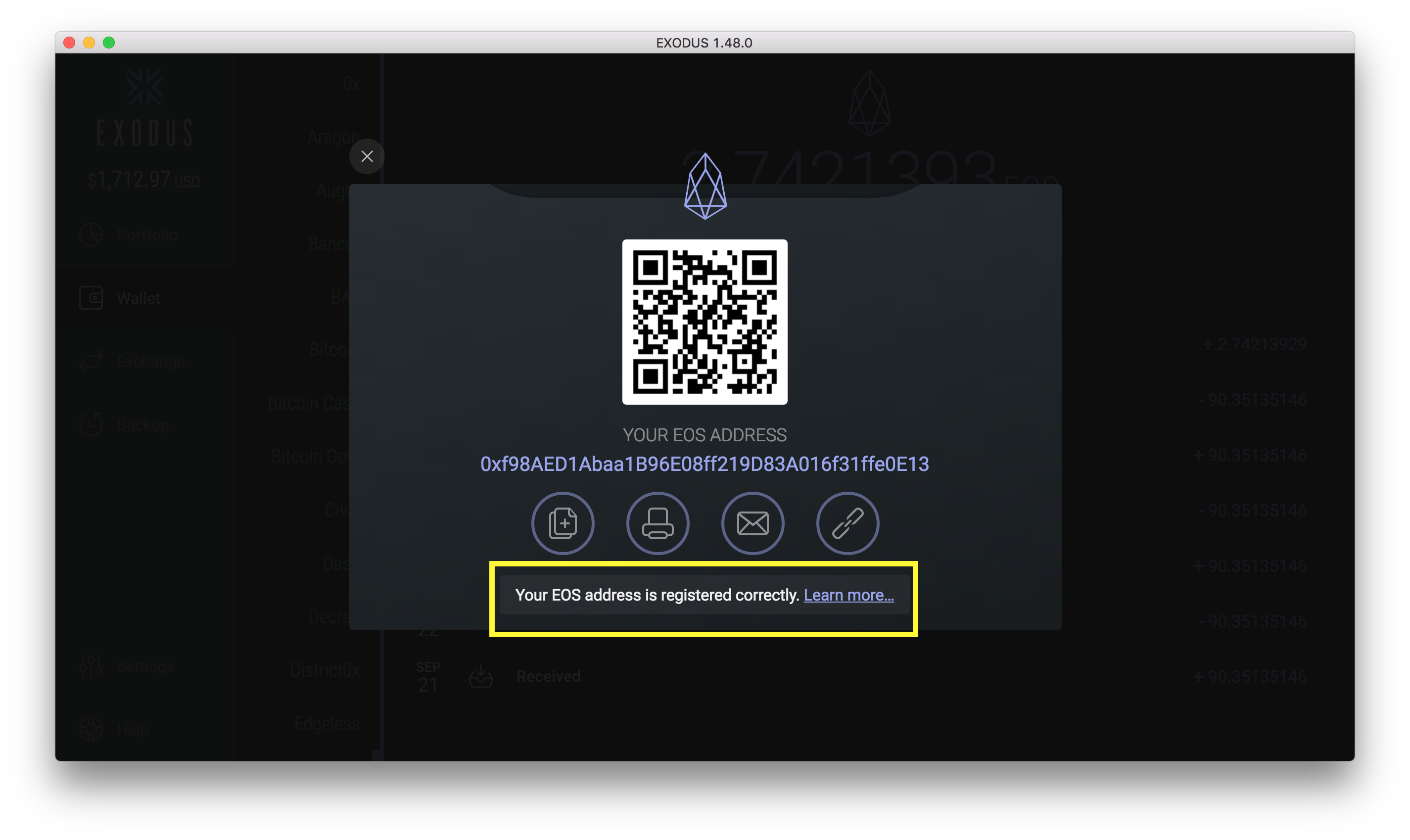 To read more about the EOS transition, read the additional information provided on Exodus.io's tutorial.