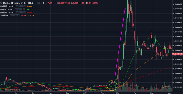 Daily view of the Dash chart from the last time we saw the same golden cross (21/02/2017)