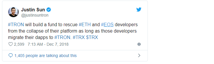 Ethereum has competition too, EOS is operational now and has seen gains in popularity among developers and even saw a 16% surge in price just this weekend. But quite possibly, the biggest threat to Ethereum now comes from Tron. Tron has launched its mainnet and allows for Dapps to be programmed in Java and to add more to the threat founder Justin Sun has offered funding to help developers migrate their Dapps from Ethereum over to Tron.