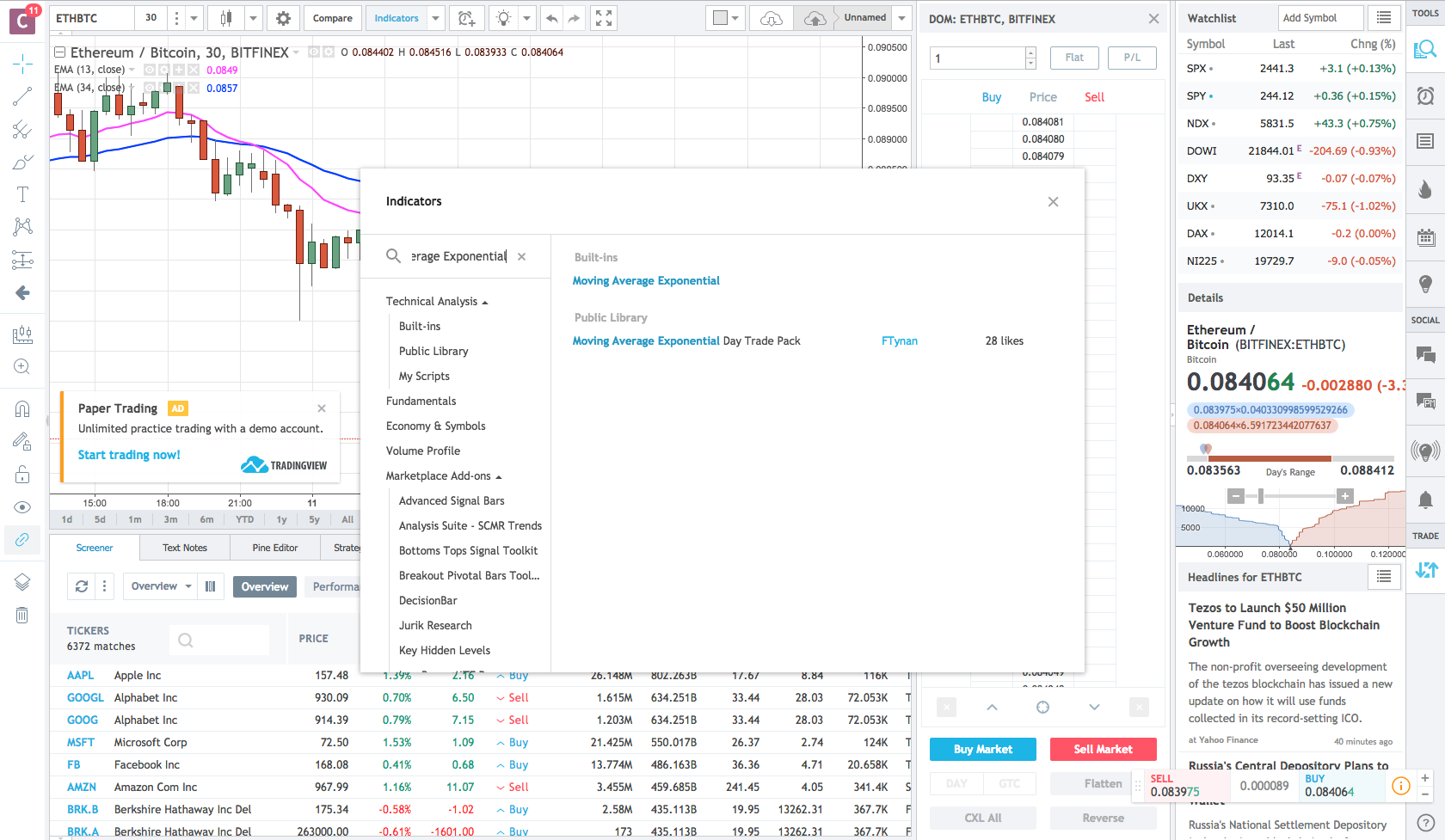 After that you need to click on the indicator tab and type in "Moving Average Exponential"