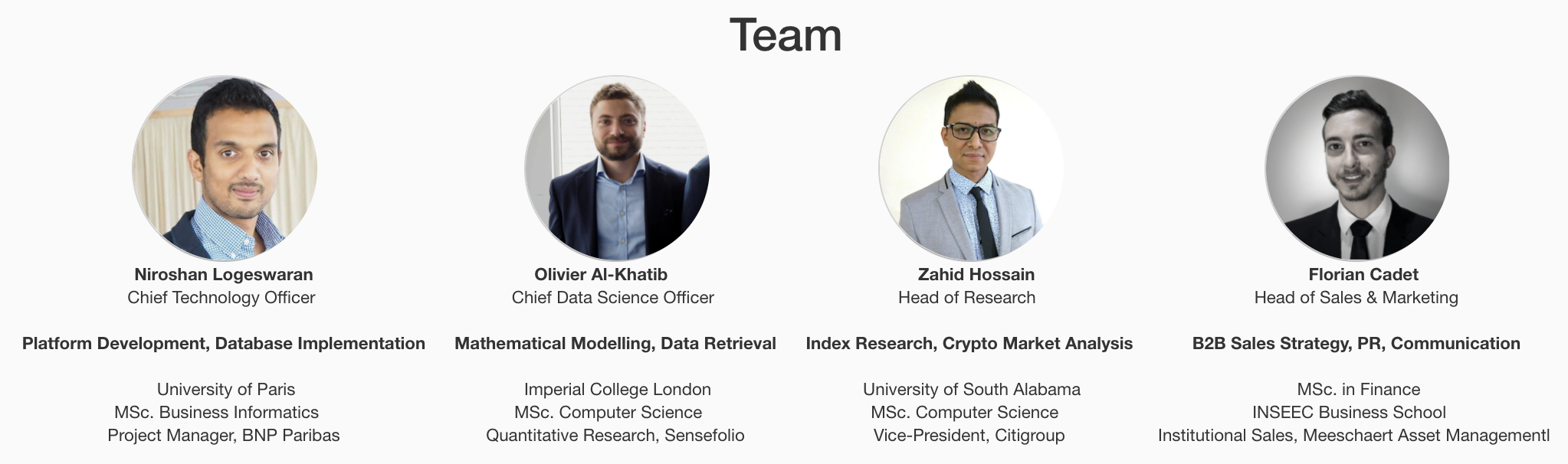 We have worked for some of the world’s largest asset managers in quantitative investment, Big Data and machine learning. We now want to use our expertise and the power of blockchain technology to transform the cryptocurrency market.