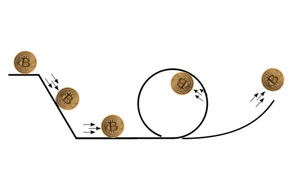 Now that we know BitCoin had reached "To The Moon" and has started crashing down towards Earth due to anti-Moon and reality forces, we need to figure out how long BitCoin will continue to fall before starting to climb again. One of the ways to determine how far an object will go is by how much kinetic energy it is has created.