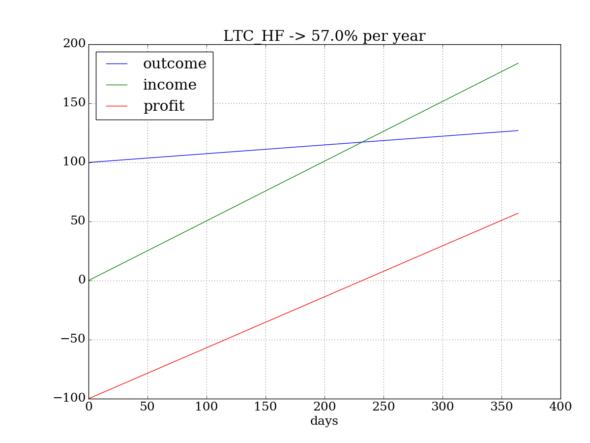 Now LTC is the only coin that could return investment in less than 1 year. Since GM mining for LTC is out of stock, the HF mining will bring 57% of profit in a year with the ROI about 7 months. This result is based on assumption the price and difficulty remain the same.