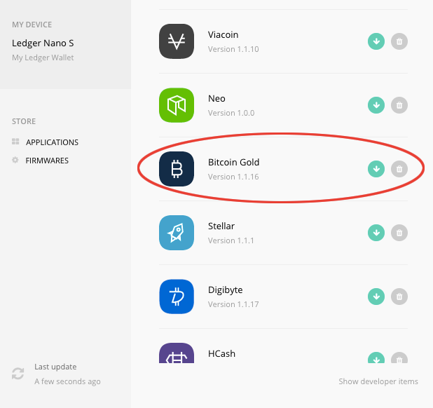 Within the Ledger Manager Chrome app, be sure to find the Bitcoin Gold app, and download it to your Ledger Nano S.
