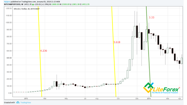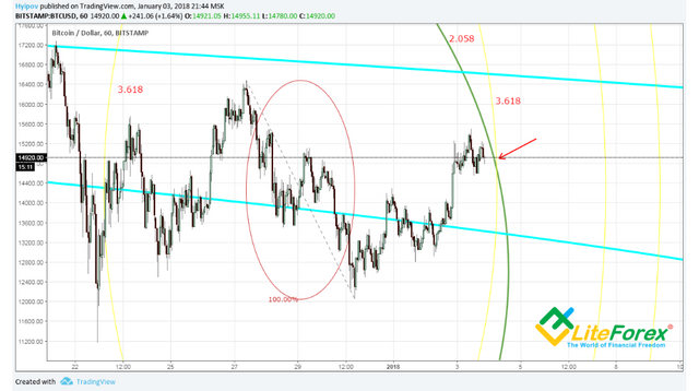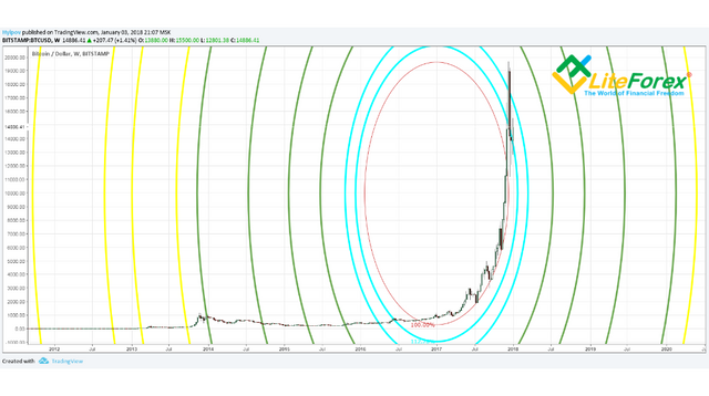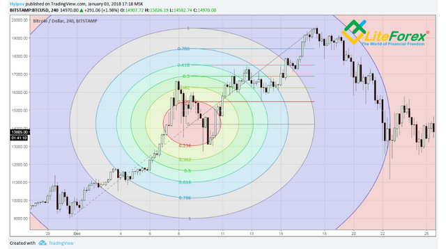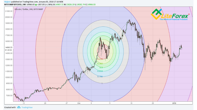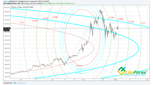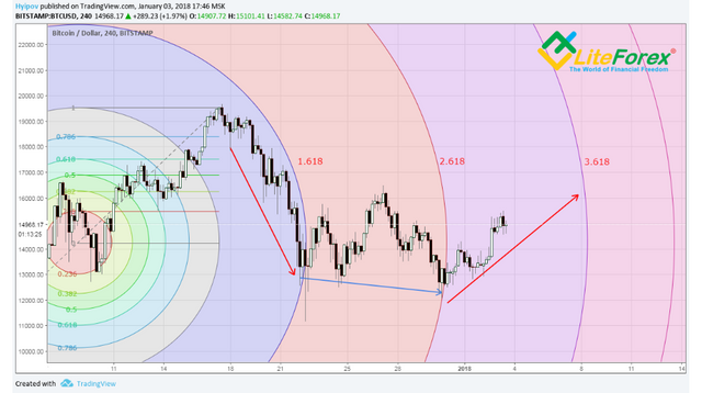 Fibonacci arcs. Theory and practical use for bitcoin forecasts.