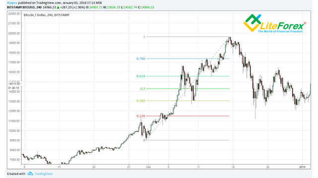 To do this, I use bullish trend from early 2016 up to the all-times high at $20 000