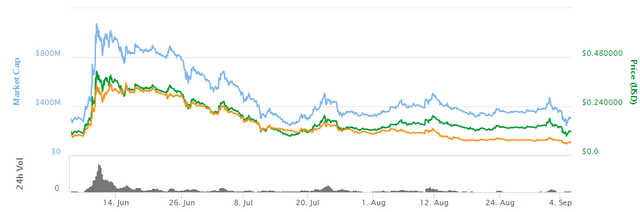 From June 10 that touched its historical maximum in US$ 0. 40, the price has begun to fall down of forceful form, forming a big support I half-close the US$ 0. 09.