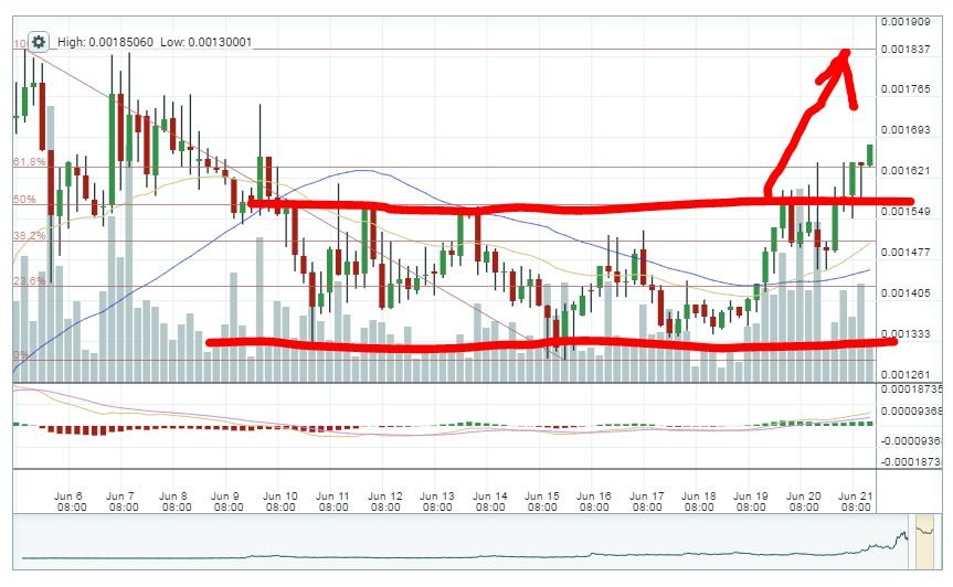 According to my understanding as you can view in attached image, #gamecredits have broken its range and now moving up. Shortly we will definately see 0.00180000