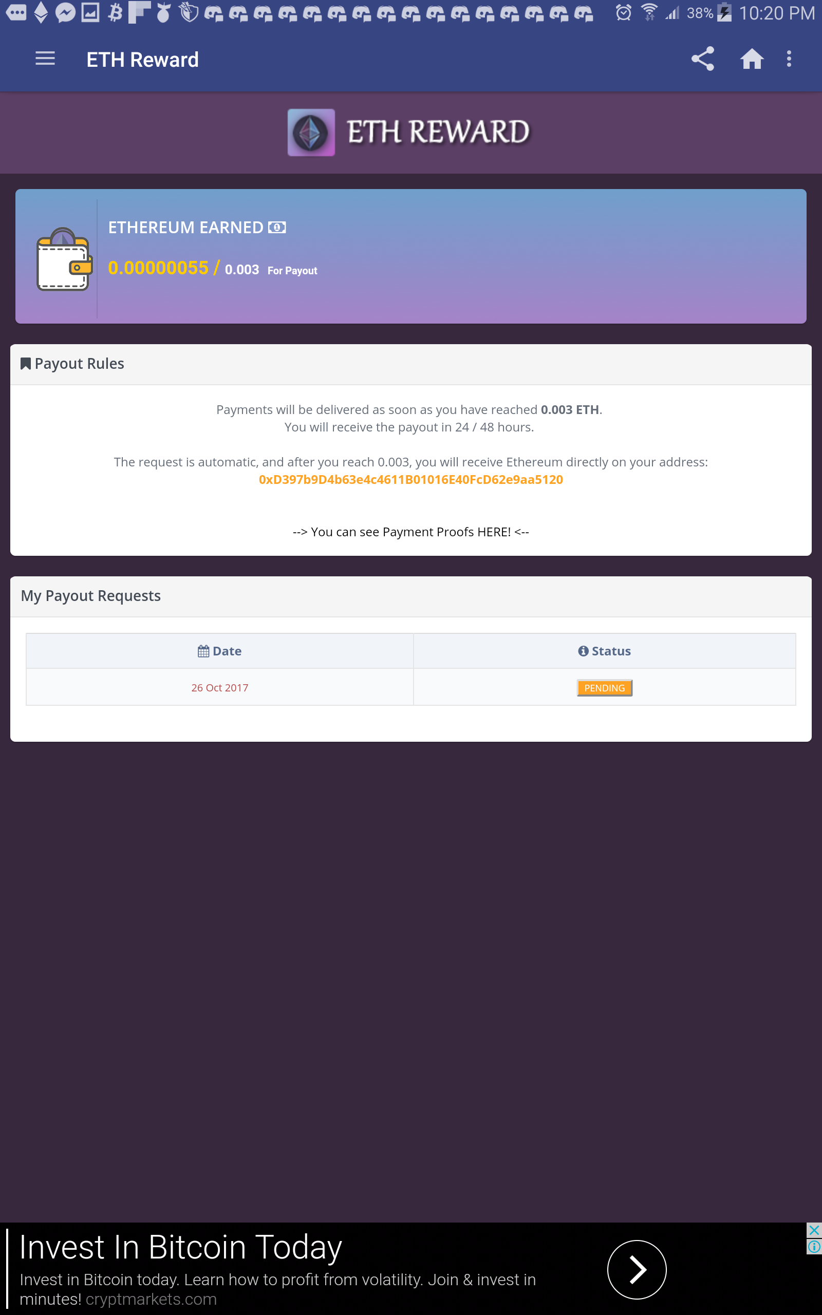 A free ETHEREUM Application Mining | Payment Received! (^_^)