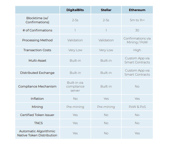 We know now that Stellar, Waves, NEO and Ethereum are cryptocurrency which are the basis for many projects out there, but they still have some disadvantages such as very high fees, long confirmation, token inflation, etc. Basically DigitalBits (XDB) is forked from stellar, except that they make a fixed supply for tokens so that inflation will not occur in the future. DigitalBits also has TPS (Transaction Per Second) Up to 10k Transactions which certainly make it ready to be adopted massively in various sectors. In the picture below you can see a comparison between DigitalBits and major cryptocurrency.