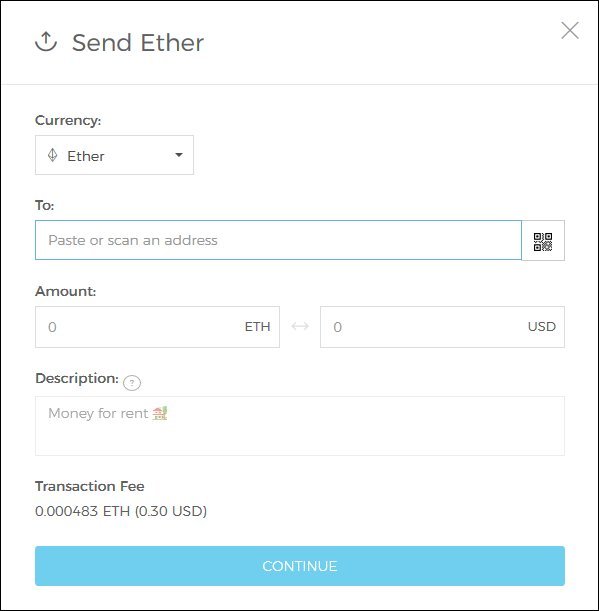 Sample Send Ether (funds) for Blockchain.info web-based wallet