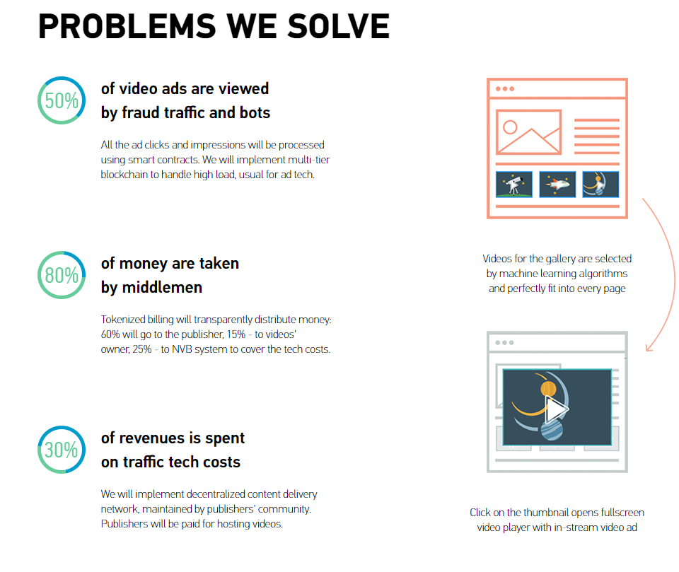 NVB Solution: They will provide a Token Video Service. Native Box (NVB) is a currency of service, having a role below the ecosystem:- Awards for participants: publishers and content creators.