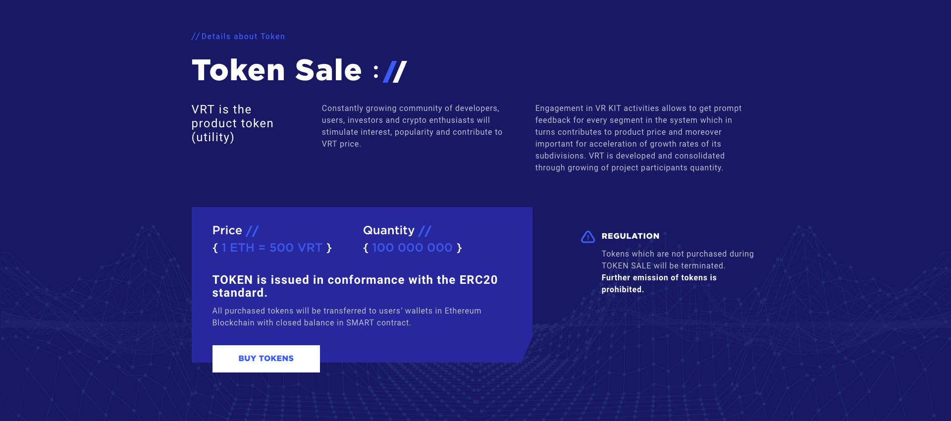 Here you can check a bit more details on their token sale, as you can expect, VRT will be an ERC20 token based on the ethereum blockchain.