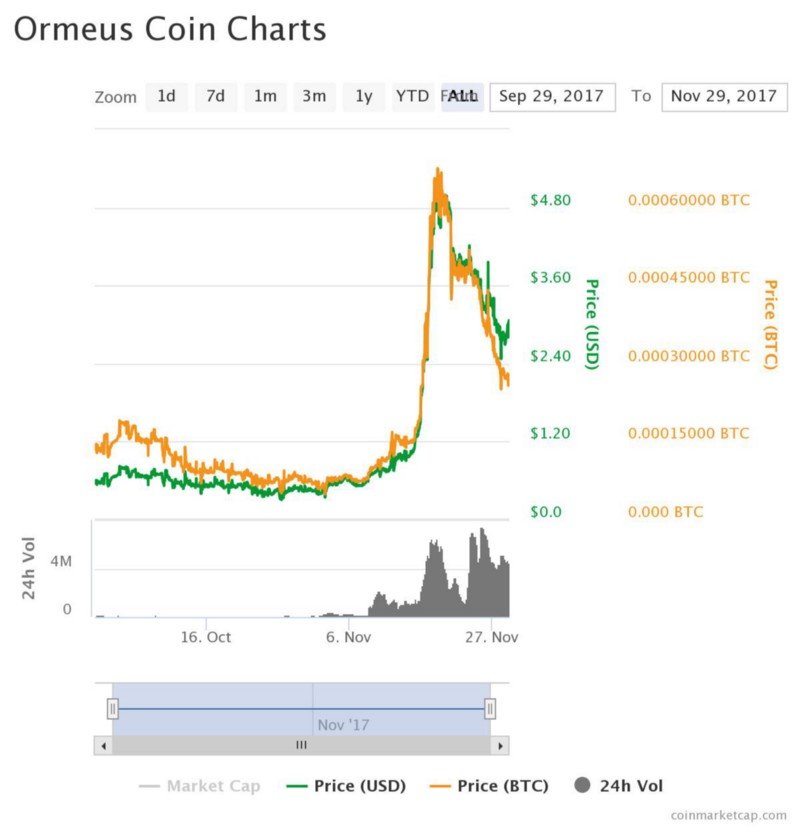 The above chart taken from Coin Market Cab website clearly shows how ORME is going up with Bitcoin in a decent way, better than some old altcoins and remember that Its a young coin which is in charts since September 2017 and its showing a strong movement with healthy corrections.