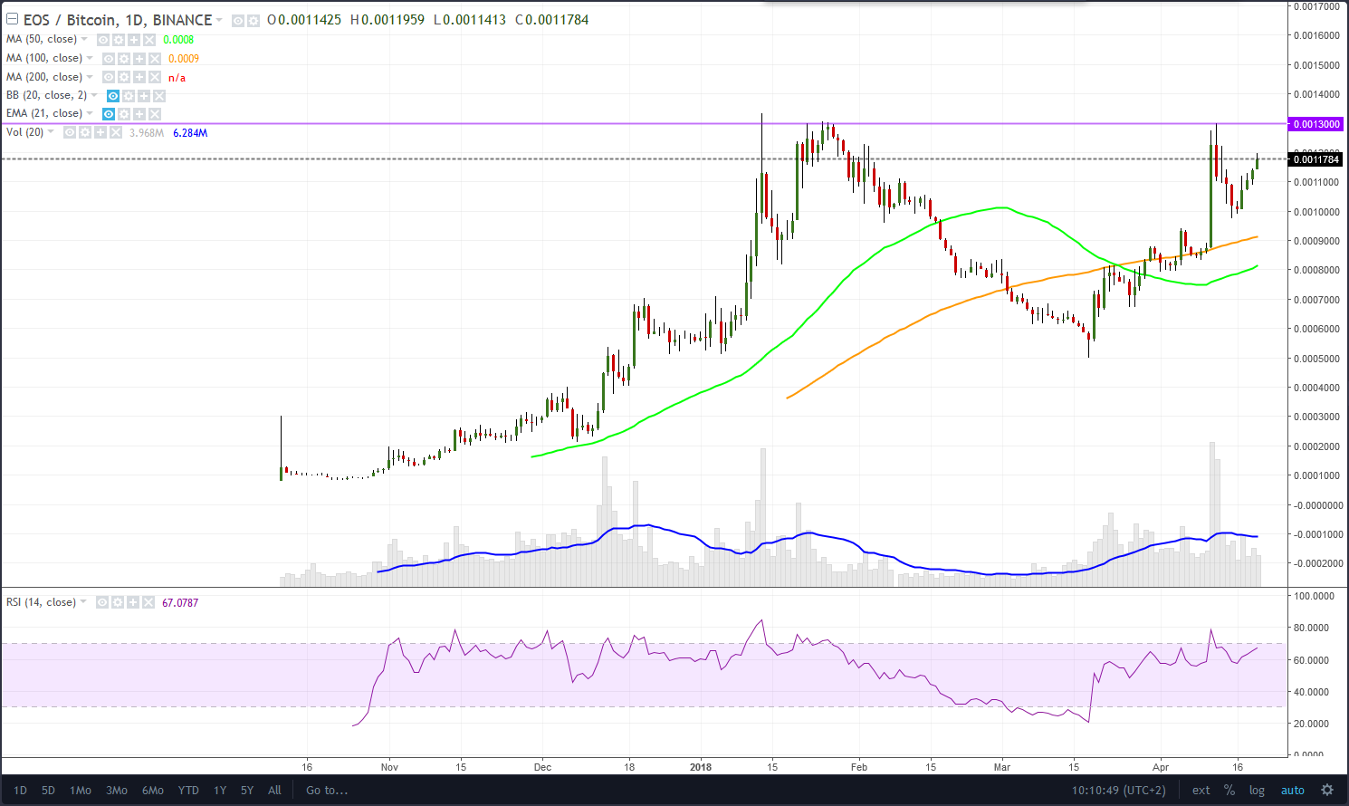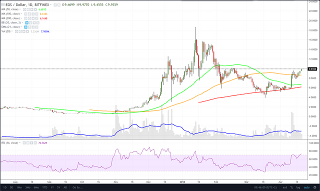For swing traders, I think we could see some or all of this 10% gain till there is a cool off considering how EOS is racing at the moment.
