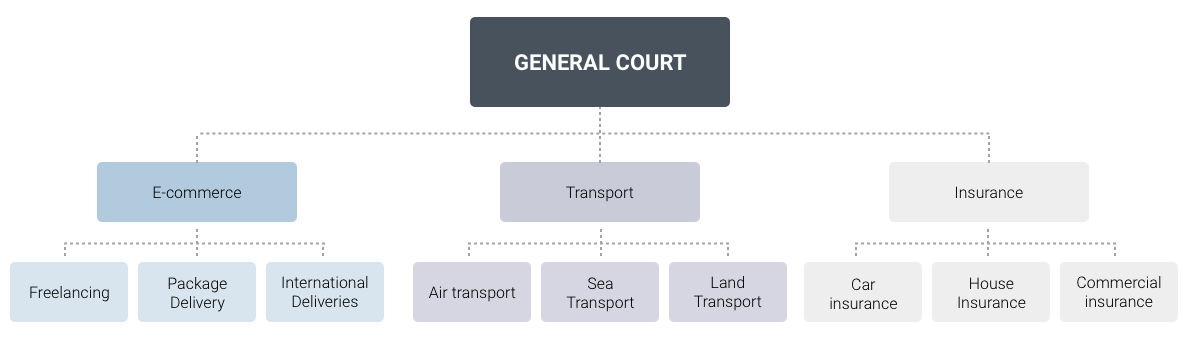 Users begin in the general court when applying as jurors. They then streamlined to a specific sub-court in their area of specialization in respect to their skills.