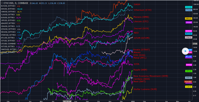 #5 BCH' - Bitcoin Cash -1.18% was my #1 pick two months ago at $300. Since then it has outperformed the market. It only dropped to #5 because its exploded 1000% in a few months but I feel it will continue to dominate in 2018 as a top 5 coin.