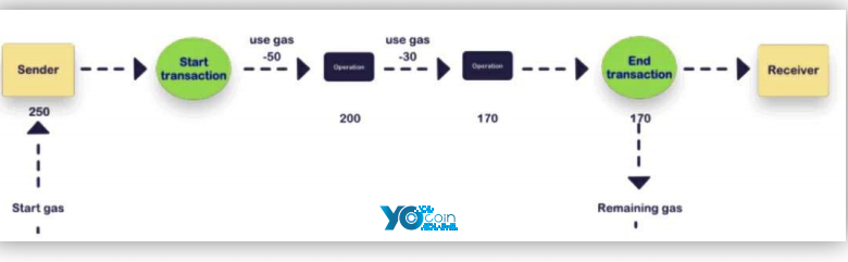 For any transaction, the sender must set a gas limit, as well as gas price. The gas price as well as gas limit is the maximum amount of Wei, which the sender is willing to pay for the transaction. Let’s imagine the sender sets a gas limit of 50,000 GWei, and the gas price is set at 20 GWei. It means that the sender is ready to spend up to 50,000x20 GWei = 1,000,000,000,000,000 Wei or 0,001 yoc for this transaction. gas limit – is max amount of gas that the sender is willing to pay. The sender can execute transactions as long as balance of his account there is enough aether to cover this maximum. Furthermore, the sender will be compensated for any losses associated with incomplete use of the gas at the end of the transaction, with the gas being exchanged at the original rate.