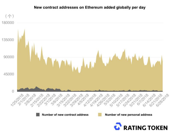 According to RatingToken, in the first half of 2018, there were more than 3,500 new contract addresses added and more than 85,000 new personal addresses on Ethereum added globally per day.