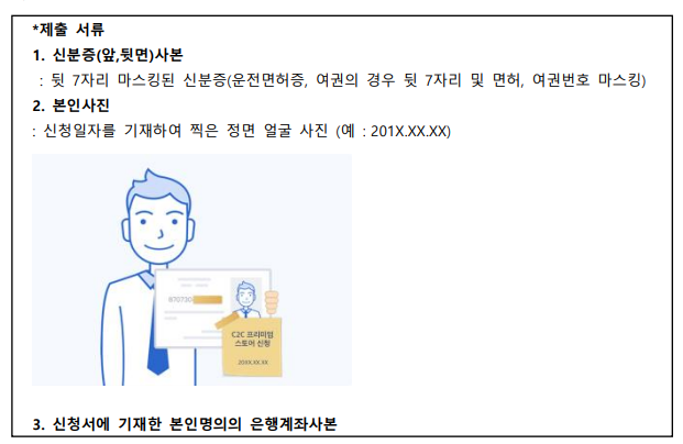 신청방법과 관련하여, 궁금한 사항은 C2C거래 플랫폼 담당자에게 연락주시면 빠르게 답변 드리겠습니다.