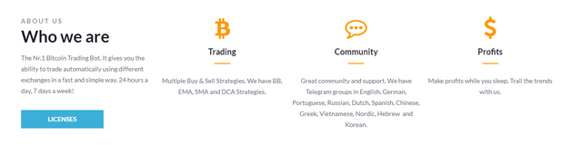 So above I just sort of went through the stuff on their site, now I'd like to share my experience. I have searched around and looked at different prices and reviews on different bots. From what I found most bots are monthly subscriptions and have many complaints and issues with them taking money off the top of the profit you've made.
