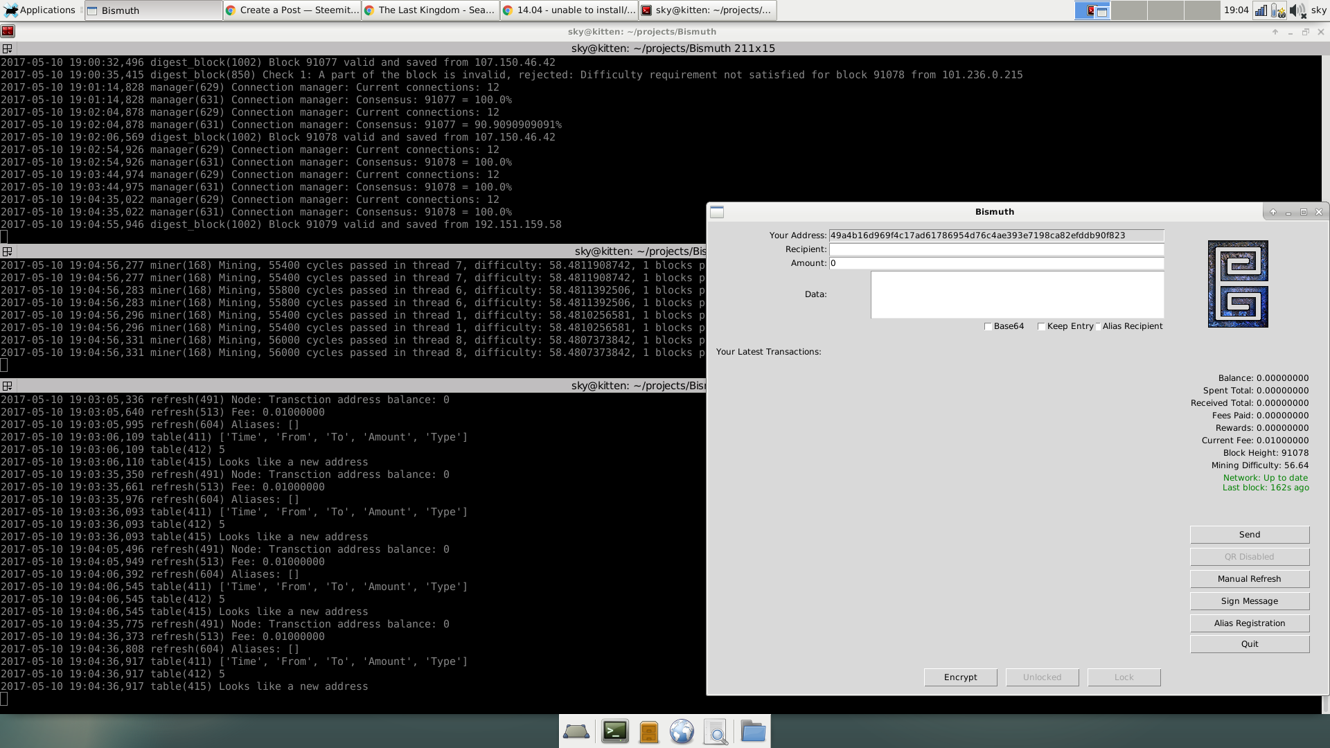 All I am going to do here is outline the steps I took to get the Bismuth client working and mining on my Linux box, a Debian 9 laptop.